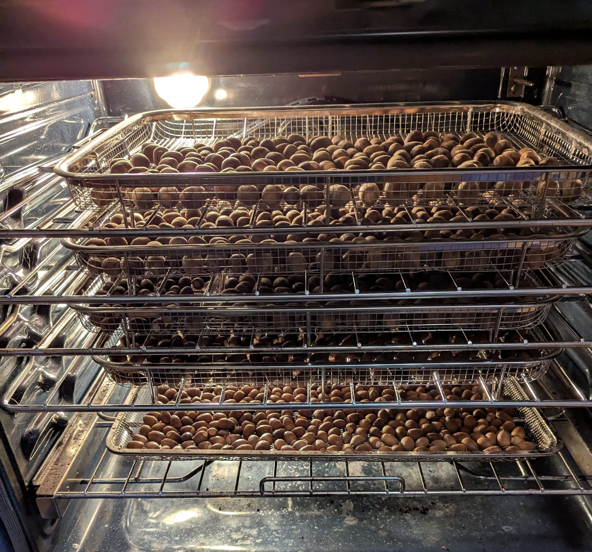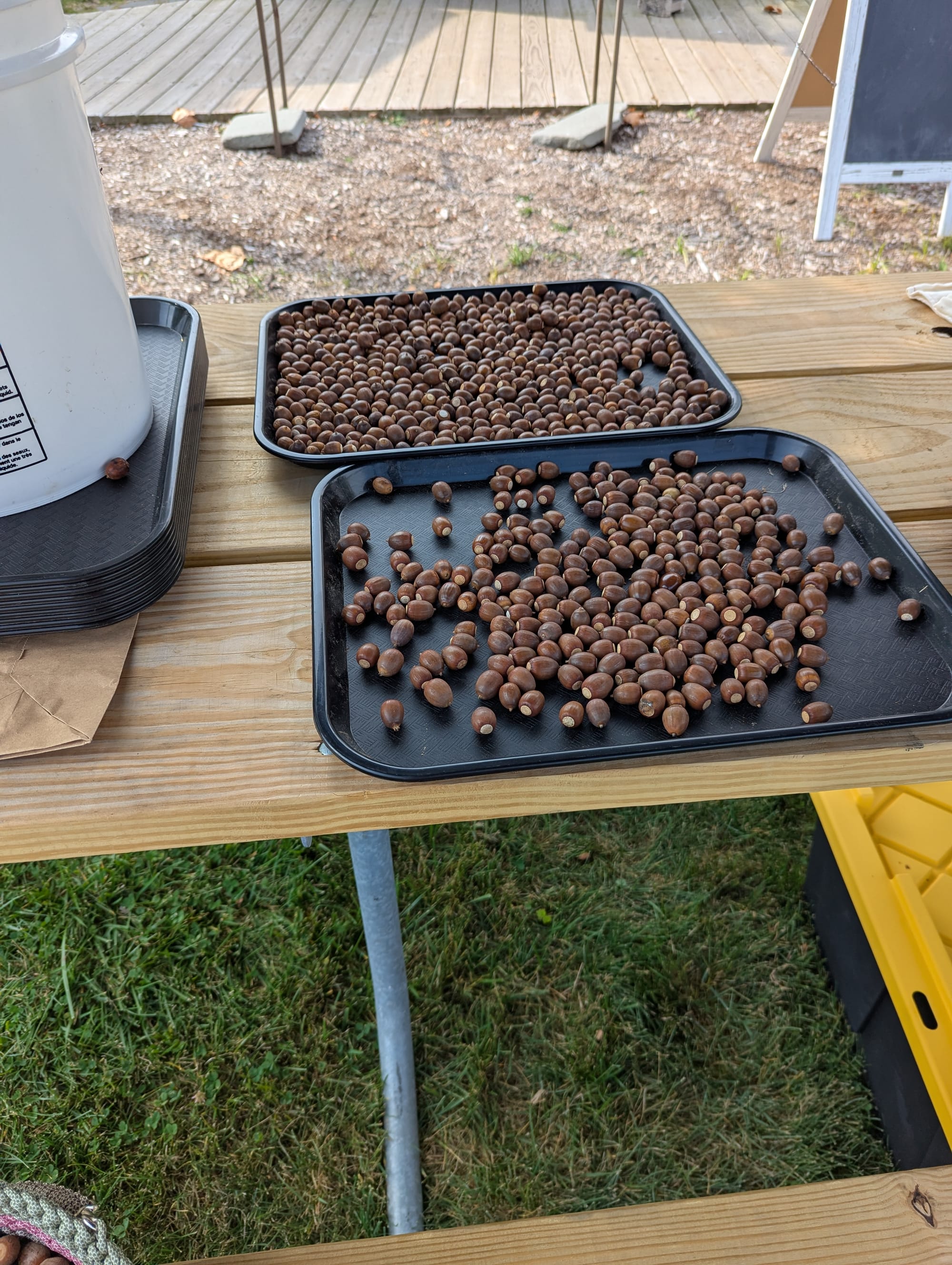 For this year's acorn harvest, I have two main goals in mind: recording as much data as I can along the way, and not letting any acorns go moldy. (Over the last 5 years, I've accidentally sacrificed dozens of pounds of acorns to find out ways they can go moldy, but I think I'm starting to hit on a process that works.)