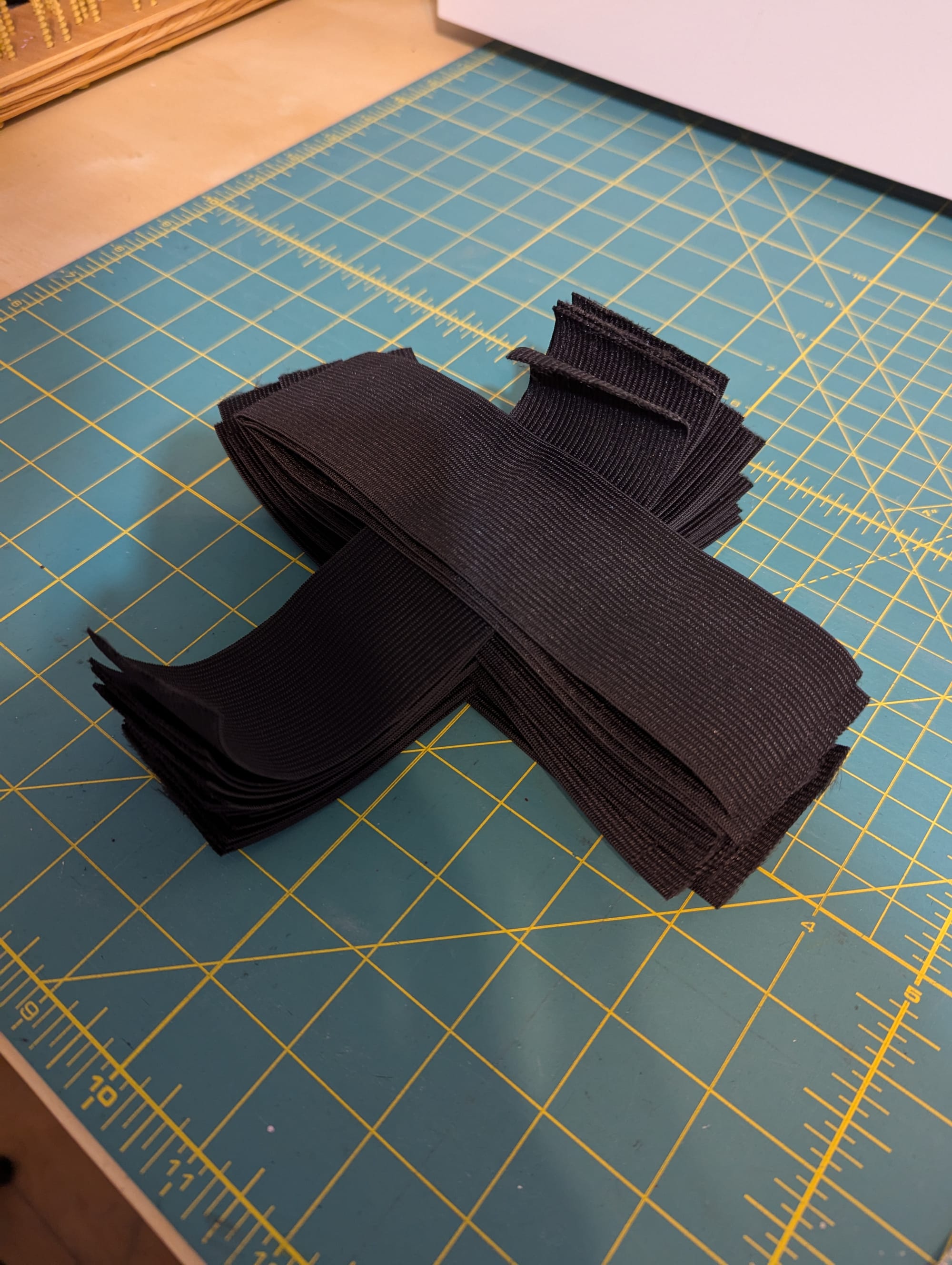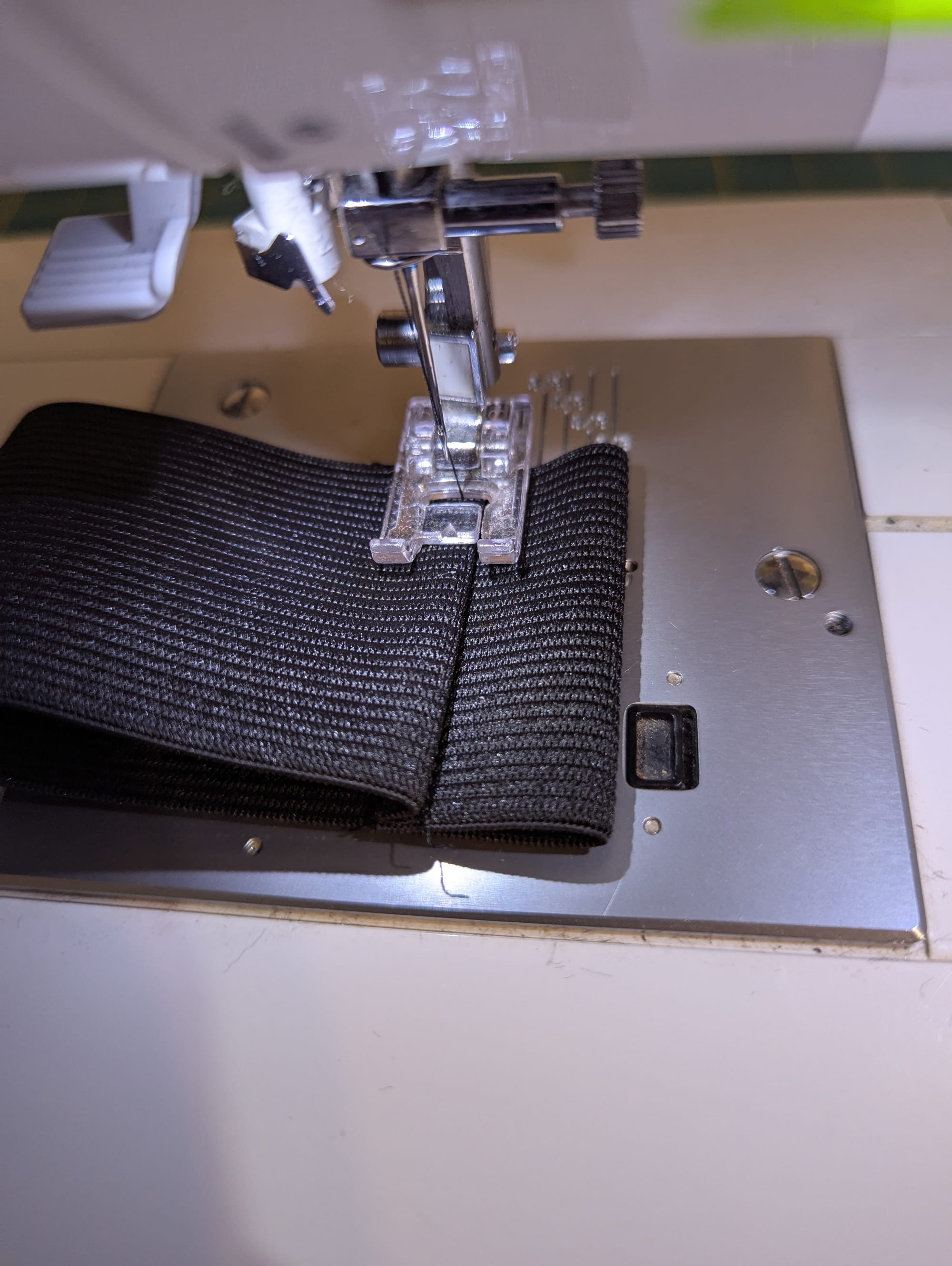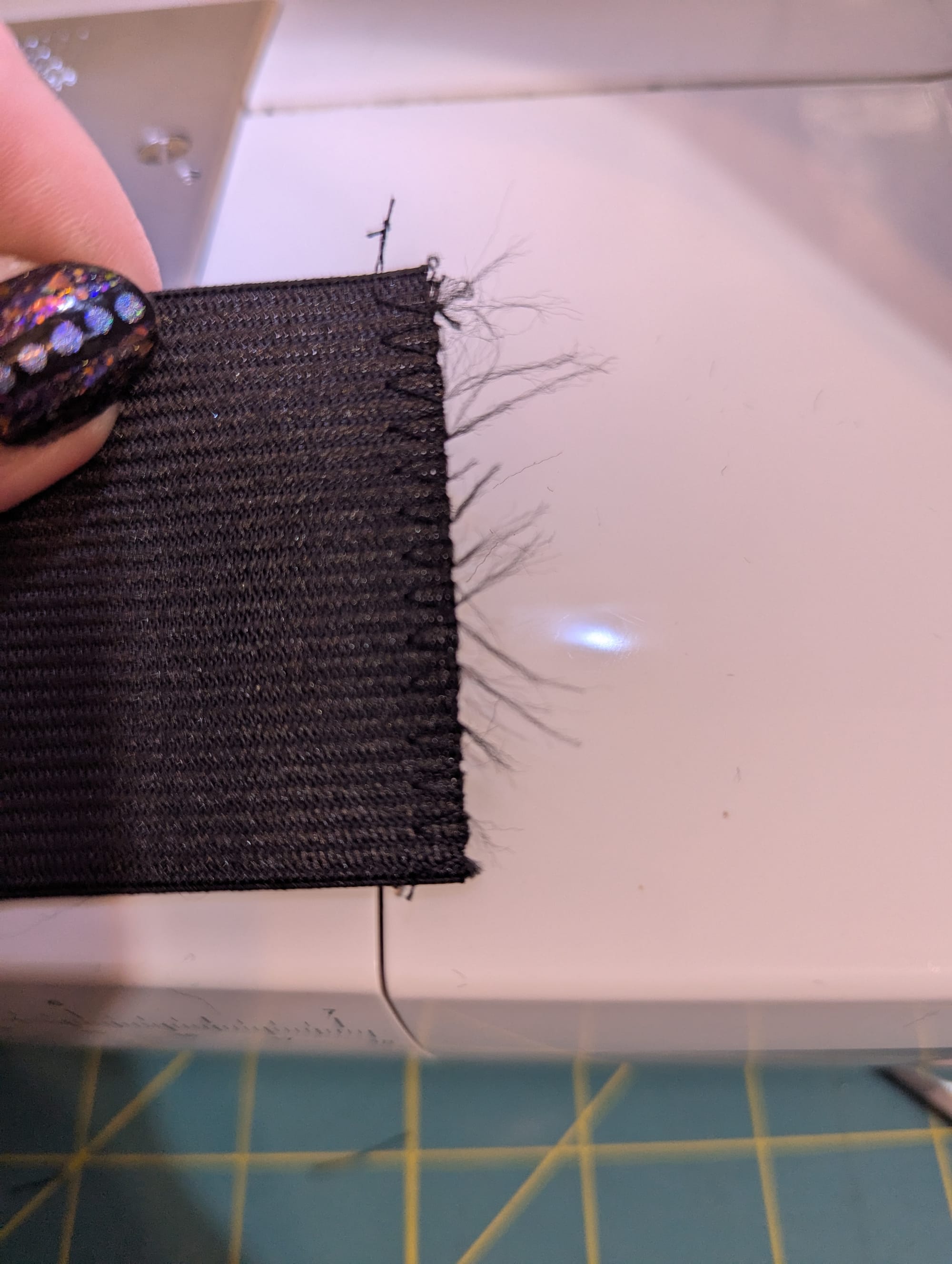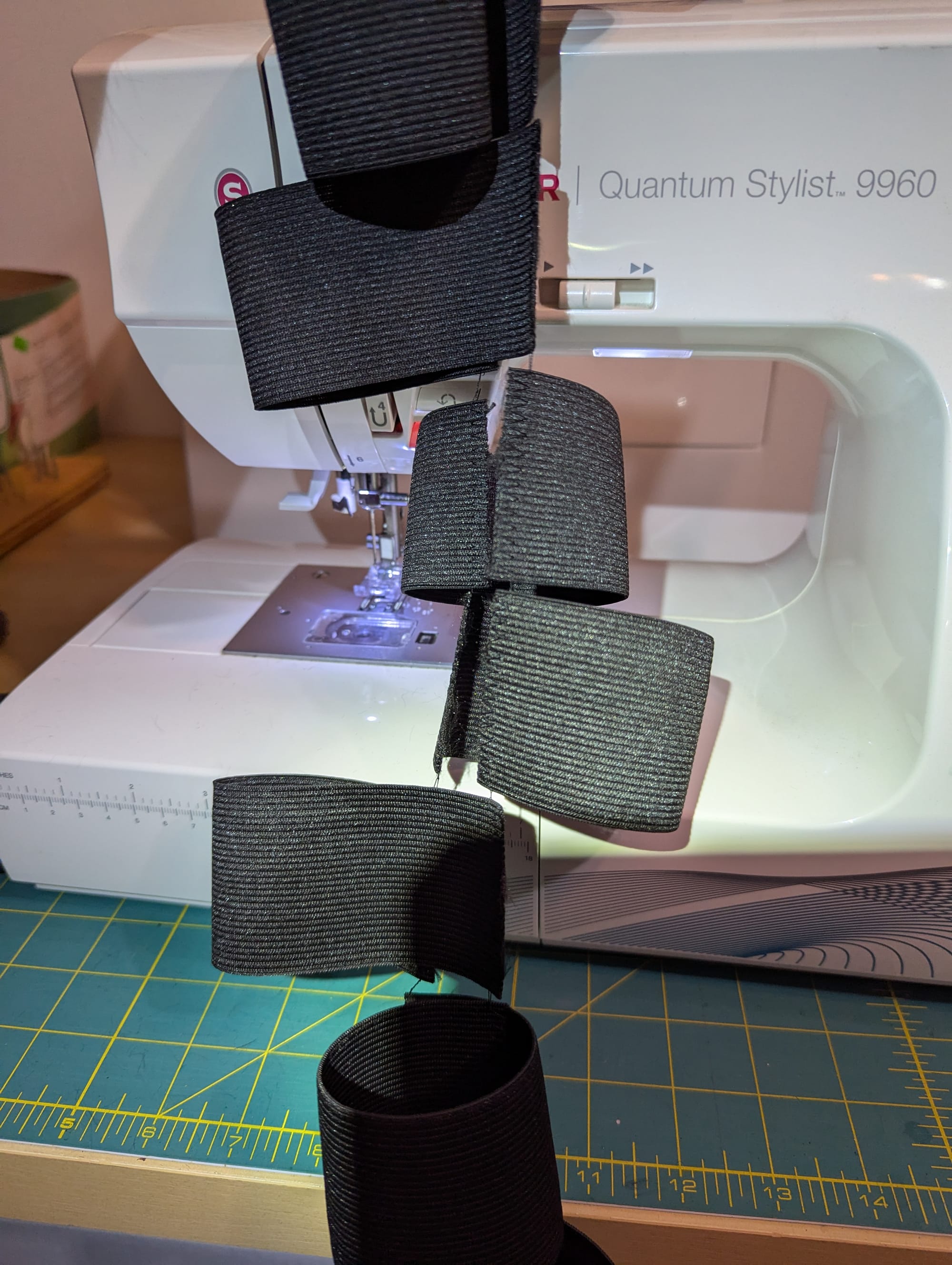 The last big thing I worked on this week was figuring out the elastic bands for the Commoner's Notepad project. This was one of the few non-upcycled materials I used for this project, so I wanted to make sure I was using it to best effect. I made several prototypes with slightly different measurements before I settled on the "standard" size. The elastic I got turned out to shed fiber like an unravelling Pomeranian, so I decided to do a zig-zag stitch along each cut edge to minimize fraying.