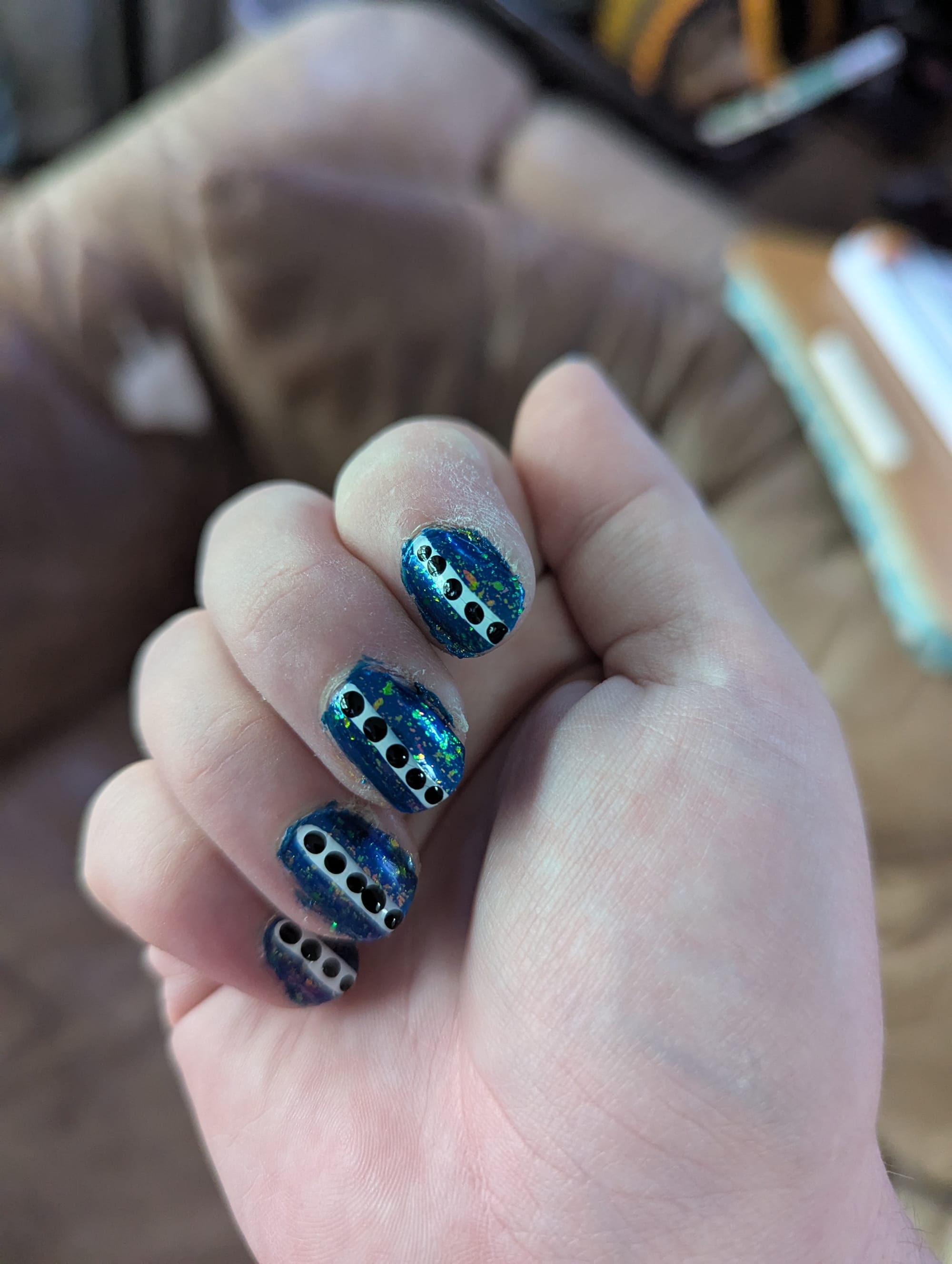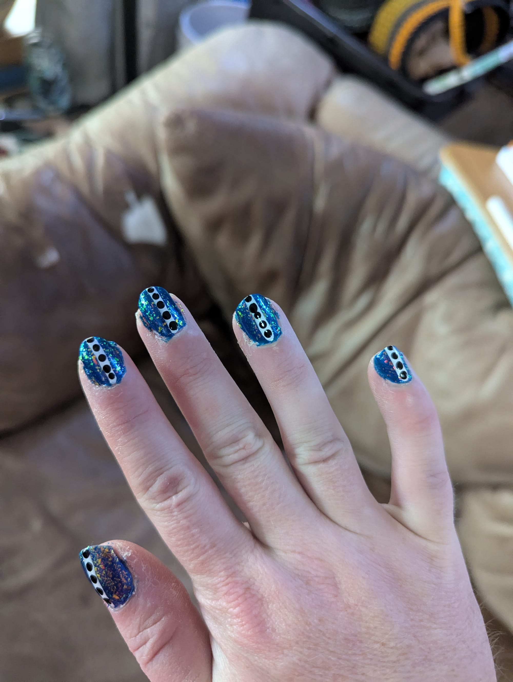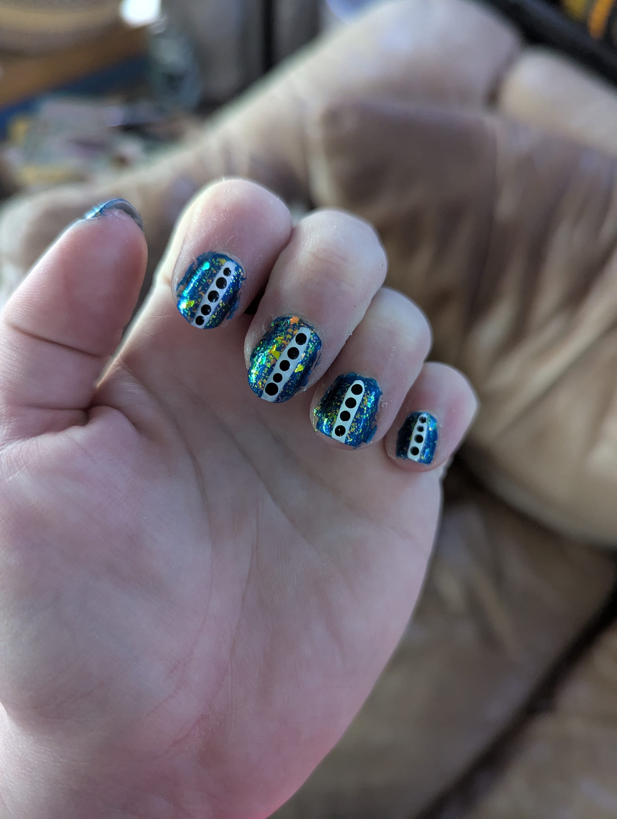 You made it to the end of the newsletter! That means you get to see this week's nails. (For newcomers: I generally write up this newsletter while I'm doing my nails each week. It takes about three hours and there's a lot of waiting for coats of nail polish to dry, so it combines well with typing-based activities.)