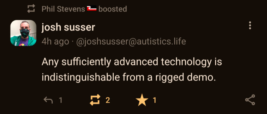 Cory Doctorow is someone whose work I've followed for a very long time. In the early 2000s, we shared a sense of optimism about the potential represented by open and collaborative projects springing up around the internet. 25 years later, we share a deep anger at the selfish assholes who gained a lot of money and power by ruining that dream. And we share a determination not to let them win. I've plugged at least one of his books here before, but this week I wanted to specifically plug his daily newsletter. His writing is very accessible, but it's also based on a lifetime of work in the world of digital privacy and freedom. He makes the occasional mistake, but he's not a bullshitter, and he doesn't play to an algorithm. If you feel like you'd like to have a better sense of what's going on with the tech world right now, he's someone that I'd strongly recommend.