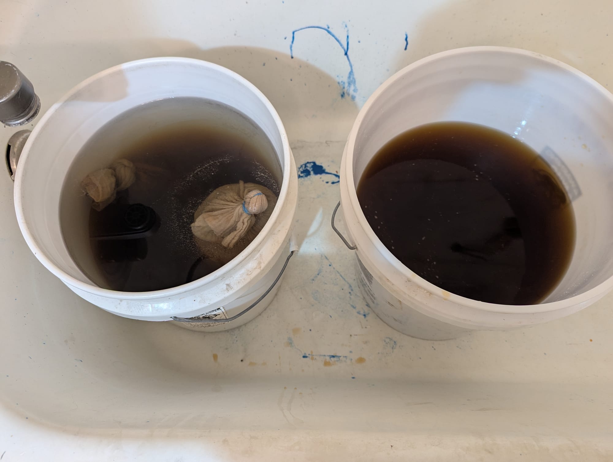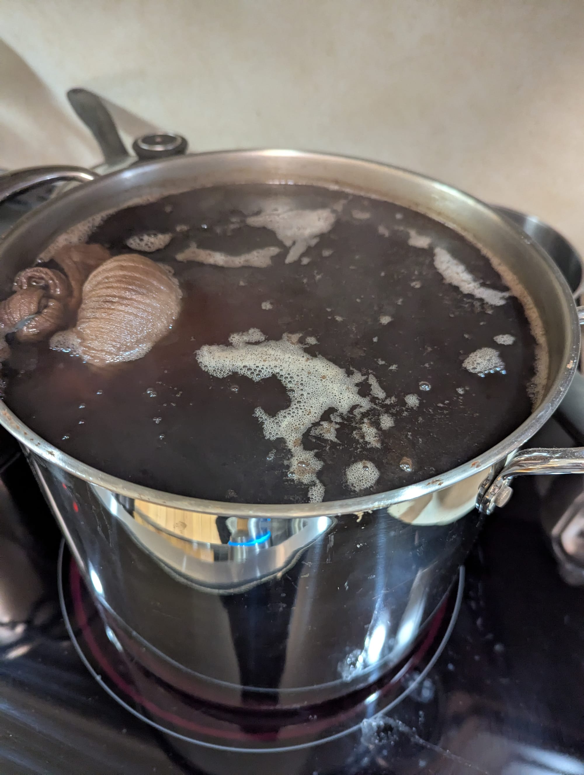Turns out, concentrated acorn leachwater starts doing some very strange things as it boils down. It started forming these weird leathery crusts around the edges of the pot, so I stopped the boil. I was able to turn 10+ gallons of leachwater into less than a gallon of concentrate, so look forward to some further experiments with that over the winter.