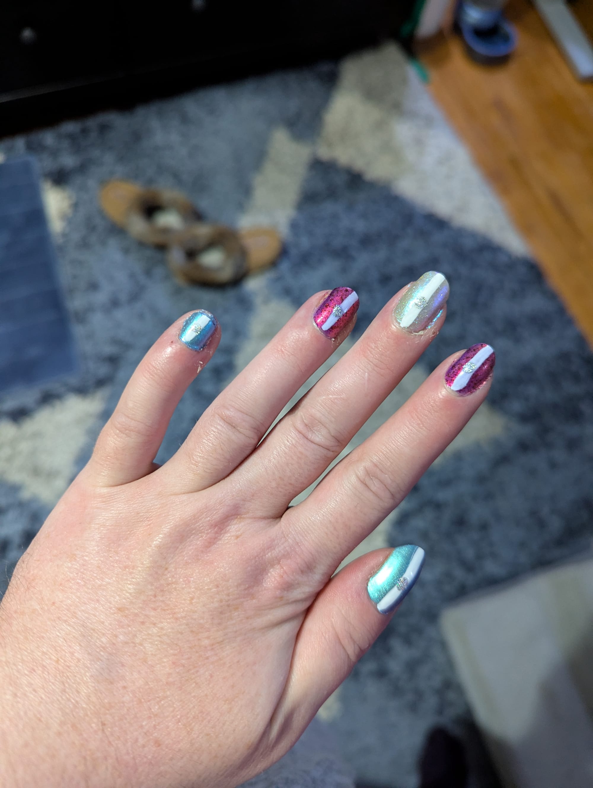 You made it to the end of the newsletter, and that means you get to see this week's nails! I started out looking through my collection for gentle colors, and ended up going for a pastel Pride flag. It's been a pretty rough week for trans folks, from Kansas revoking people's drivers licenses and letting people sue us if they catch us using the "wrong" bathroom to being targeted by Trump in the State of the Union. It's easy for it to get lost among the 1001 other ways the world is getting f—ed up right now, but check in on your trans friends and family, and don't vote for a--holes. If we end up with a law like that in Michigan, I'm going to have to ask some really awkward questions at City Council. I don't think anyone wants me in the women's room, and as far as I know the only gender neutral restrooms in town are at North Grove. There's only so much bread pudding a body can take 😂