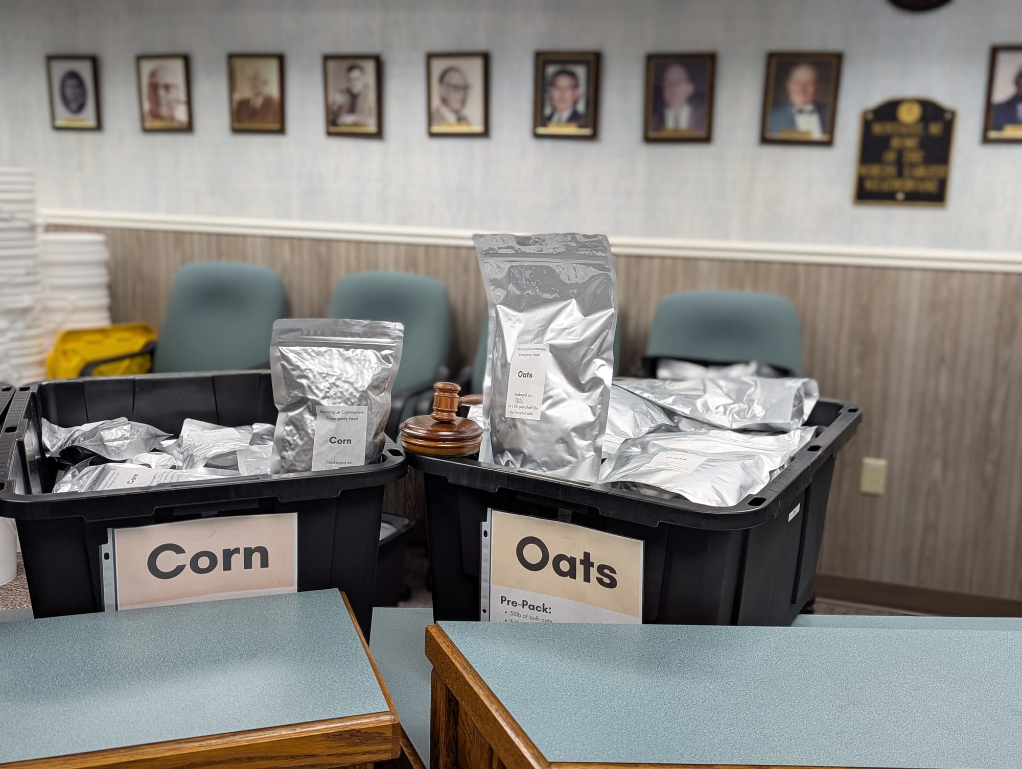 We lined the bins of packed food up along the city council desks, so that we could easily walk down the row and grab a bag from each bin as we packed the buckets. Not so that we could pretend the different staple foods were city council members and concoct elaborate plotlines wherein councilmembers Potato and Salt sought to win the support of the Legume Coalition in their bid to topple the ruling Grain Alliance. It was for grownup reasons. We swear.