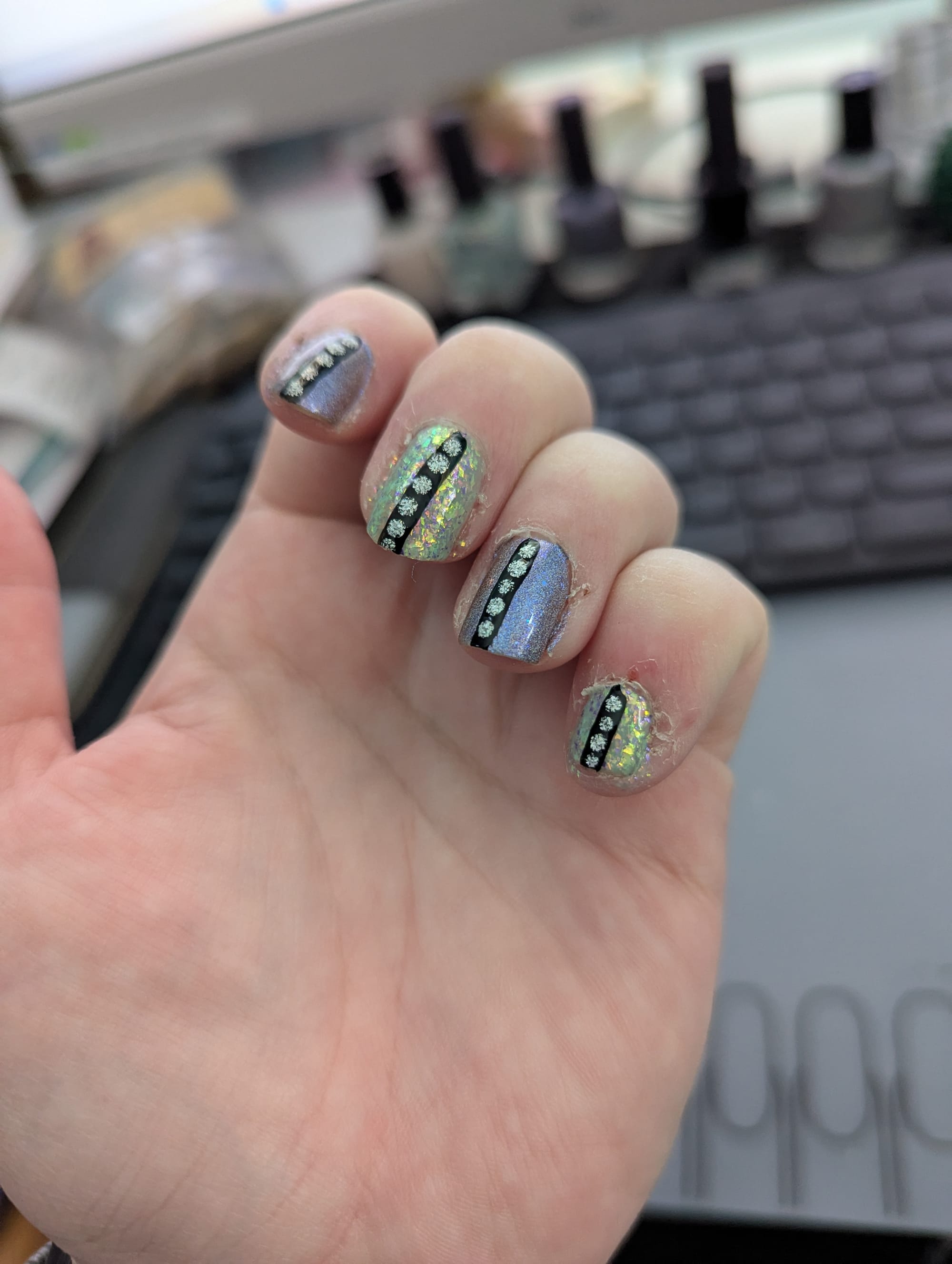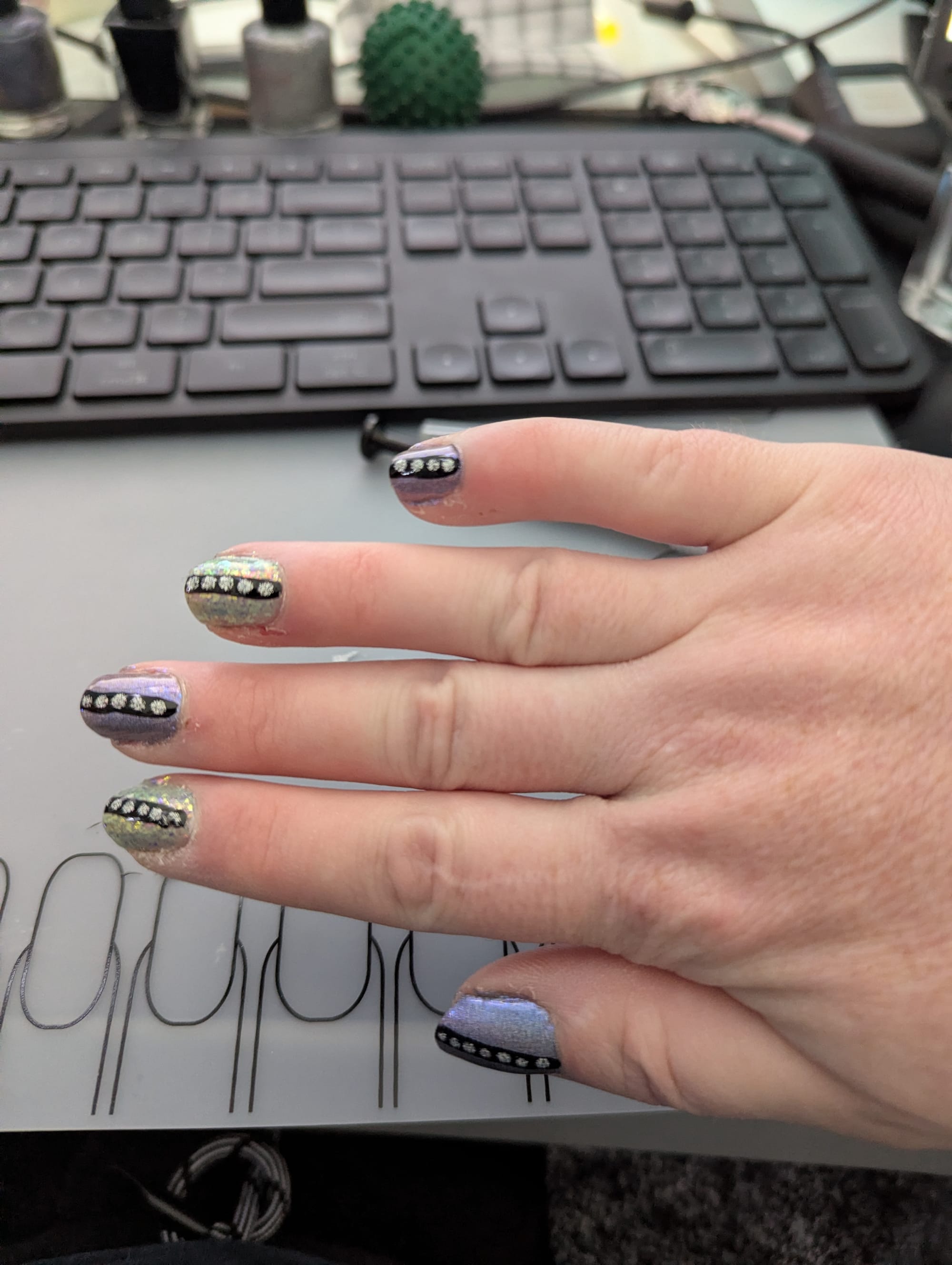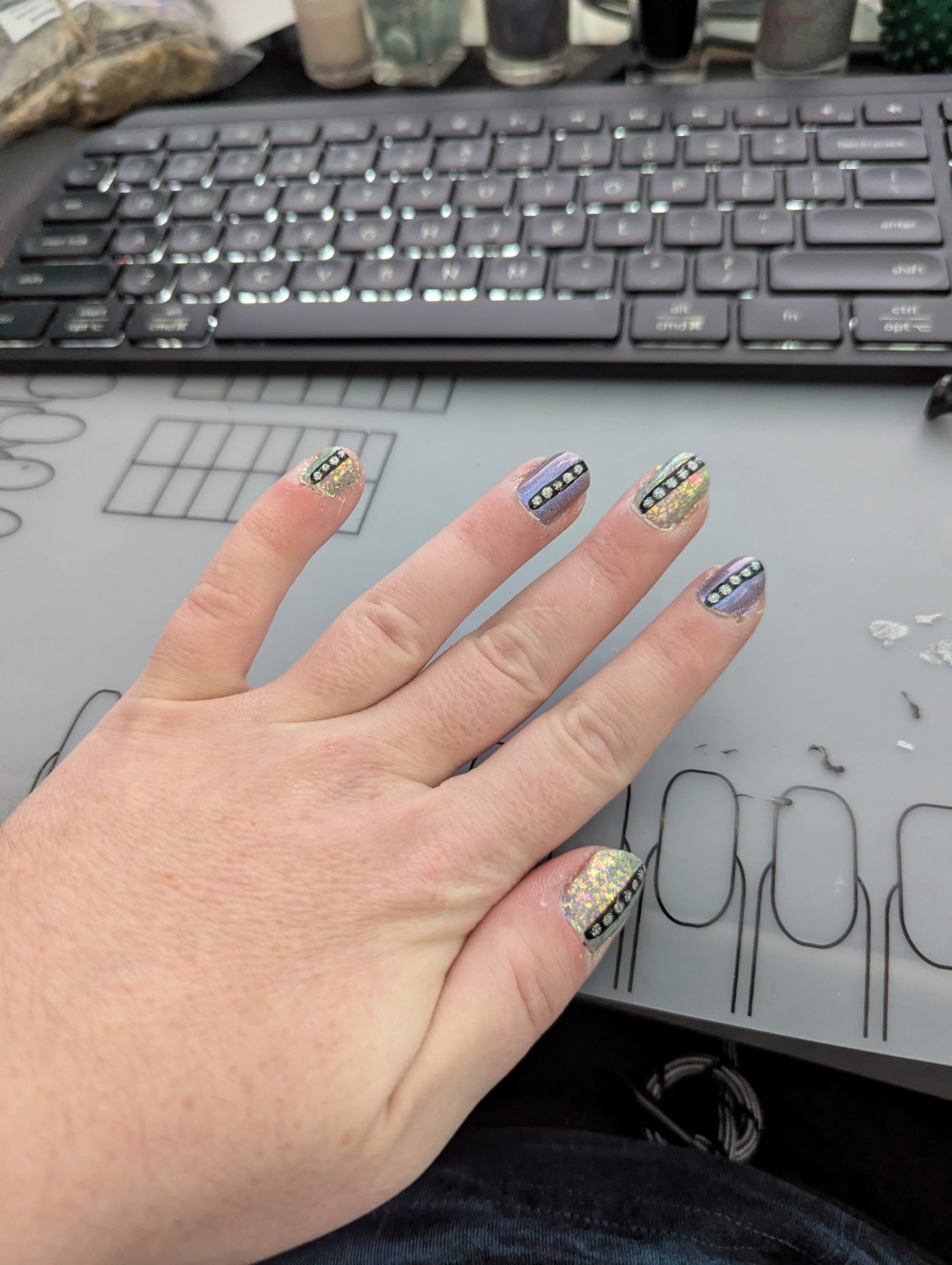 You made it to the end of the newsletter, and that means you get to see this week's nails! I wanted to aim for something subtle but sparkly this week. I'm feeling an urge to curl inwards and protect myself, and I wanted to find a combination that felt like it balanced the gentleness I needed this week with a little sparkly reminder not to hide away from the world. I'm fairly pleased with how it turned out.