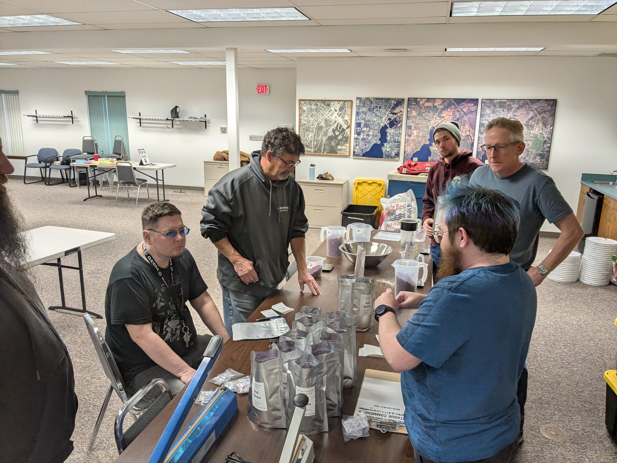 Nate and I spent the past couple of months gathering up supplies with the assistance of the community, and we packed them up in Costco bins so that each bin had 50lbs of food, the bags and labels needed to package up that food, and an instruction sheet for packaging and distributing it. We got most of the food at Whispering Pines or Costco, though we're hoping to partner with Montague Foods for future events like this.