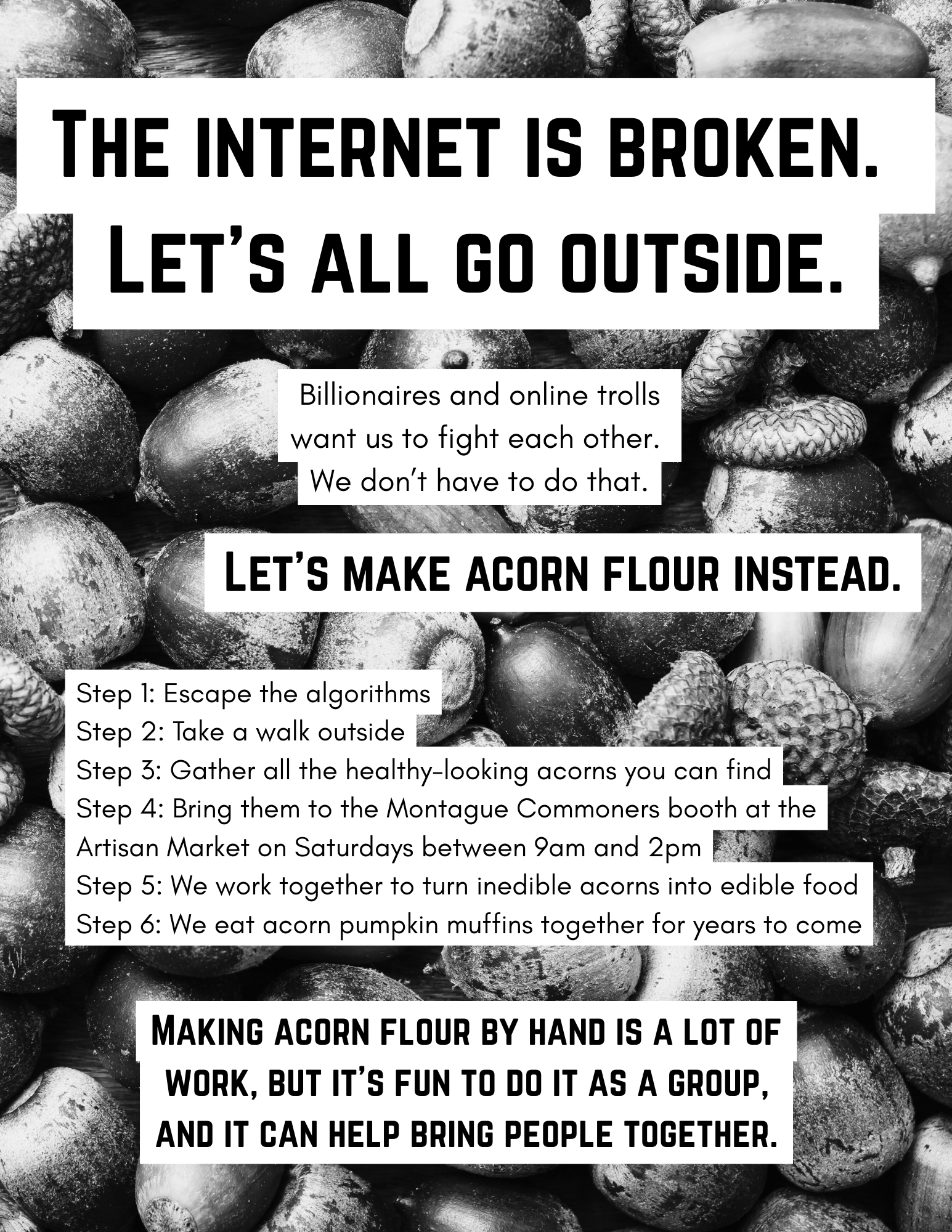 I found my first batch of ripe acorns on Saturday, so I'm declaring the season officially underway! Mickkayla and I shot a bunch of video on identifying types of oaks and figuring out which acorns are worth harvesting. She'll be sharing that over on the Commoners social media feeds over the course of the next week or two. I'll be out gathering in the cargo bike this week, so stop by and say hi if you see me. Saturday at the Artisan Market, we'll be starting the sorting and shelling process, and over the next couple of weeks we'll add in the steps to take it all the way to flour.