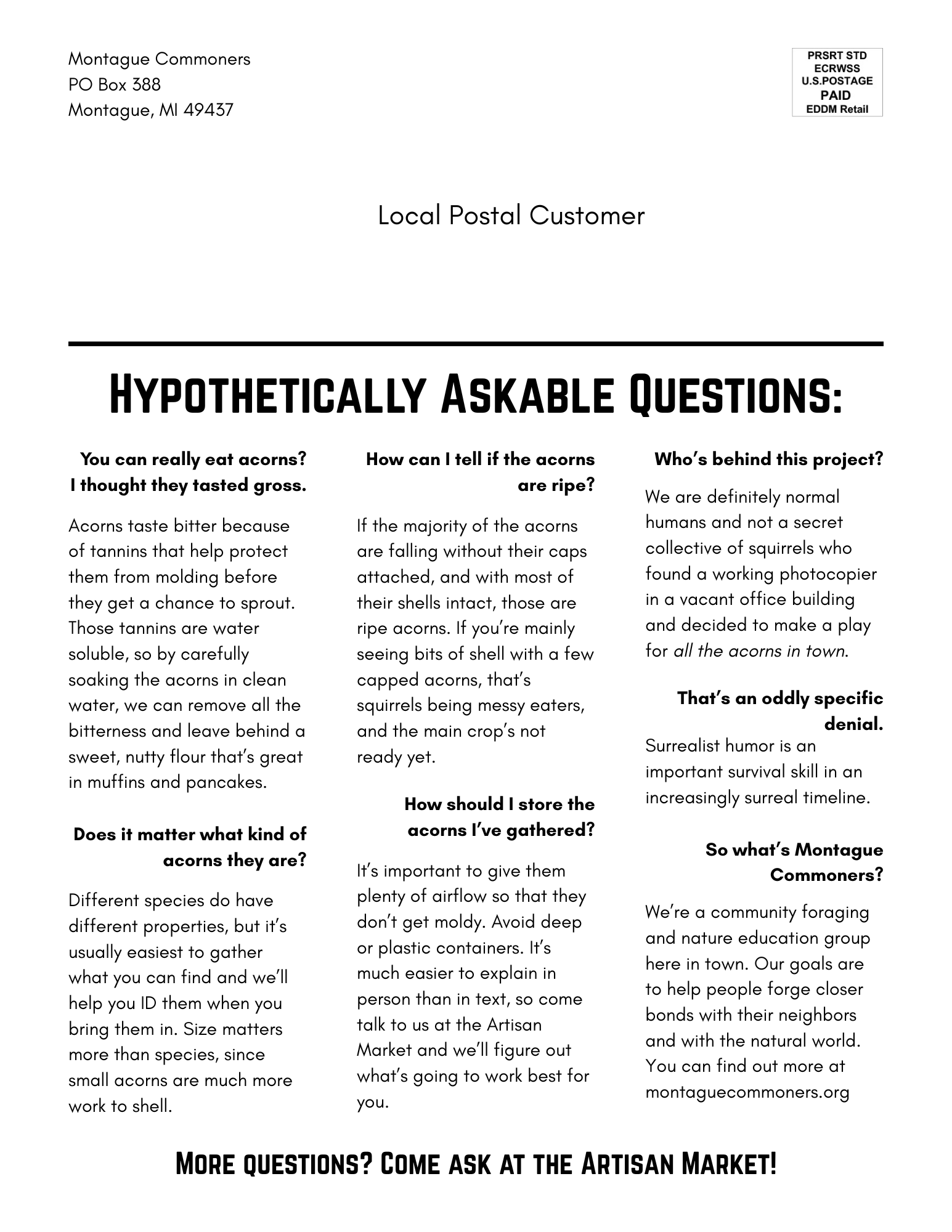 Hey all, I spent my usual Sunday writing time putting together a physical mailer that I'm going to send out to everybody on the City of Montague postal routes.