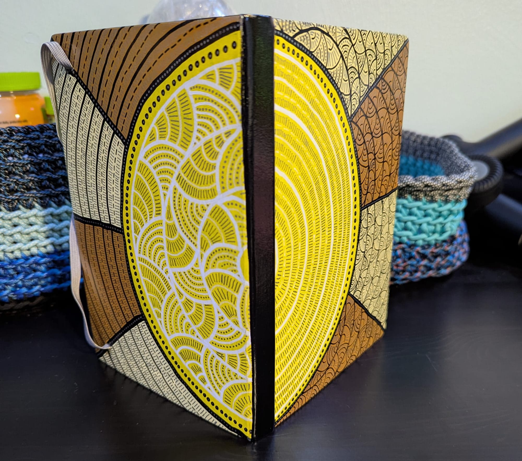 I keep a daily journal to track seasonal foraging observations, as well as the details of projects I'm working on. I mostly use Leuchtturm dot grid journals, but I like to customize the covers with my own art before I start using them. This one had been sitting on my bedside table for about six months waiting for embellishment, so it was one of the first things I tackled. I'm quite happy with how it turned out, and I'm looking forward to using it when my current journal fills up in another three or four months.