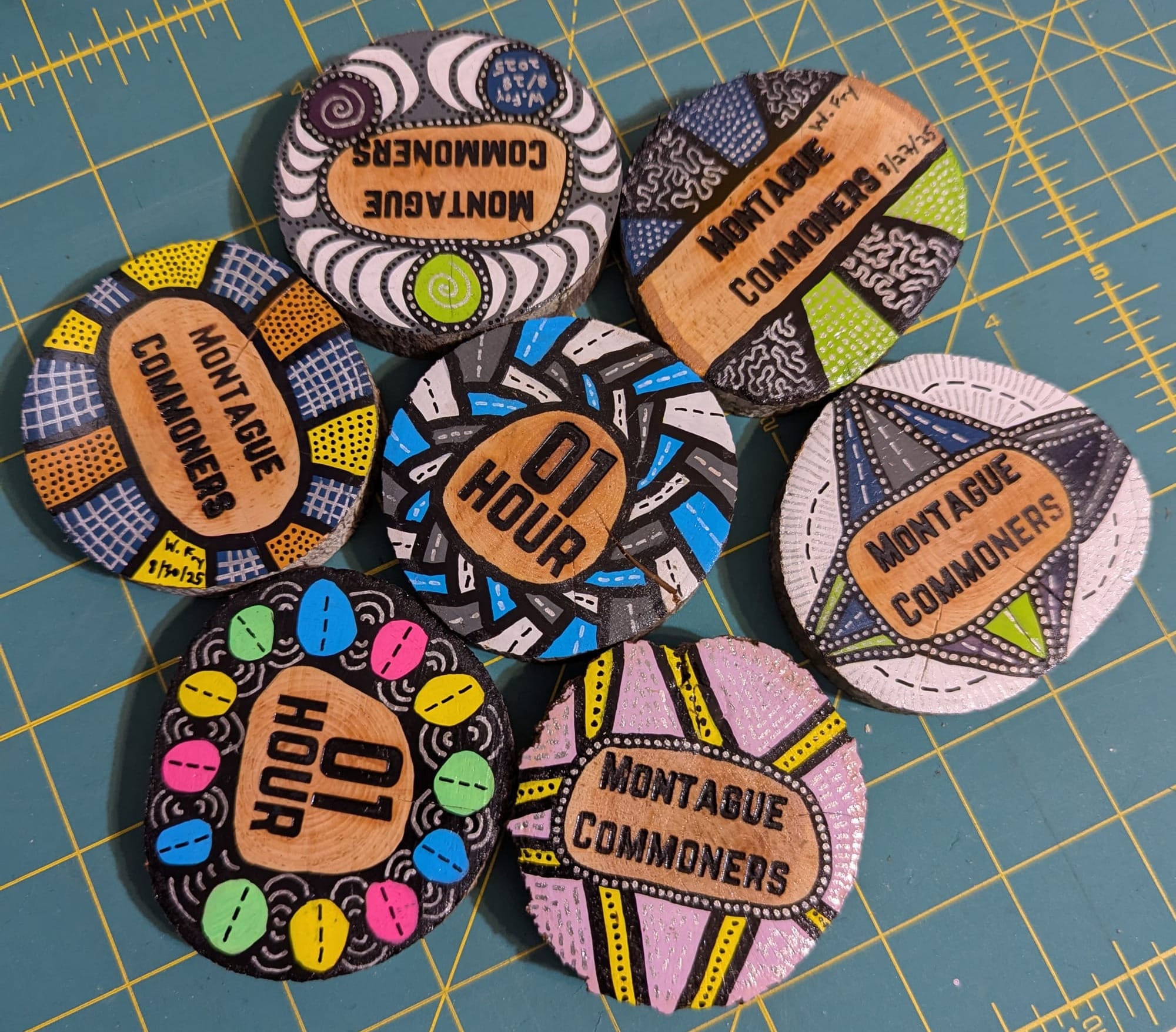 I also made several batches of our "Commoner's Hour" tokens. I'm still working on a full write-up of how hour tokens work for the website, but the short version is that they serve as an internal barter currency within Montague Commoners.