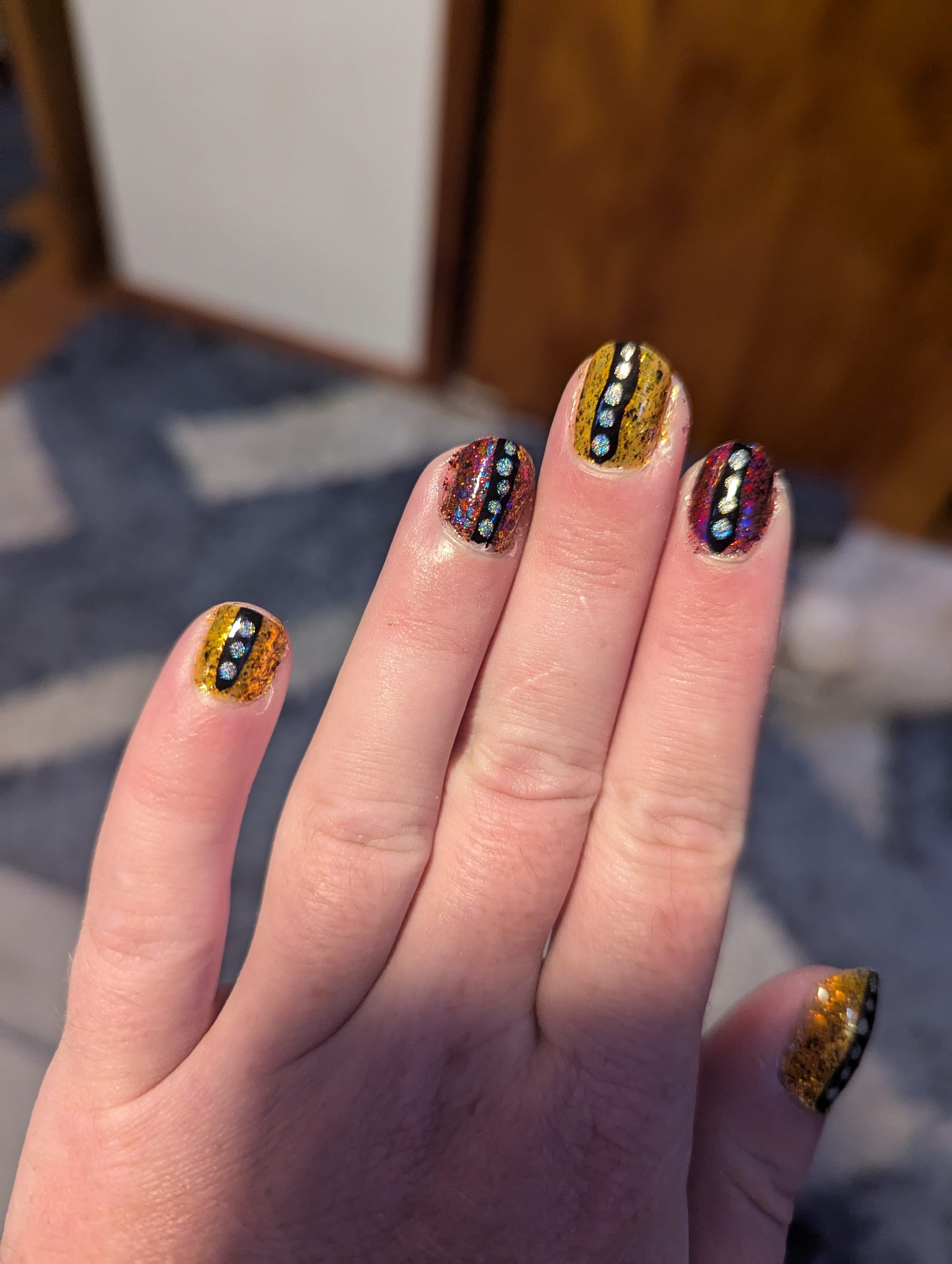 You made it to the end of the newsletter, and that means you get to see this week's nails! I went with glittery yellow and red this week in honor of some of the maples starting to get their fall color. I'm throwing in a "before" picture as well so you can see what my nails looked like after skipping my routine for two Sundays in a row 😂 Honestly, they held up pretty well for a three week old manicure. Goes to show the importance of a good base coat and top coat.