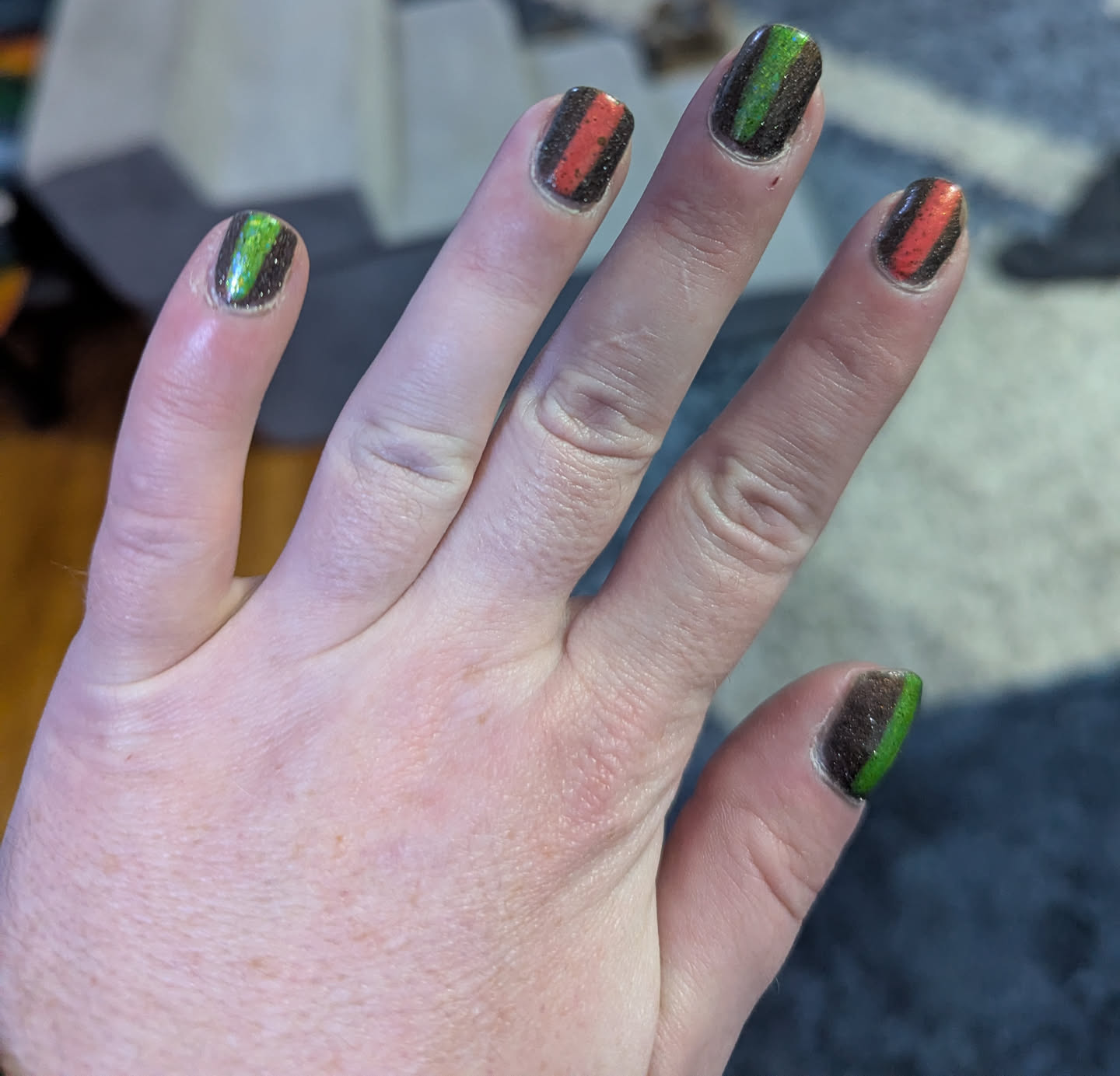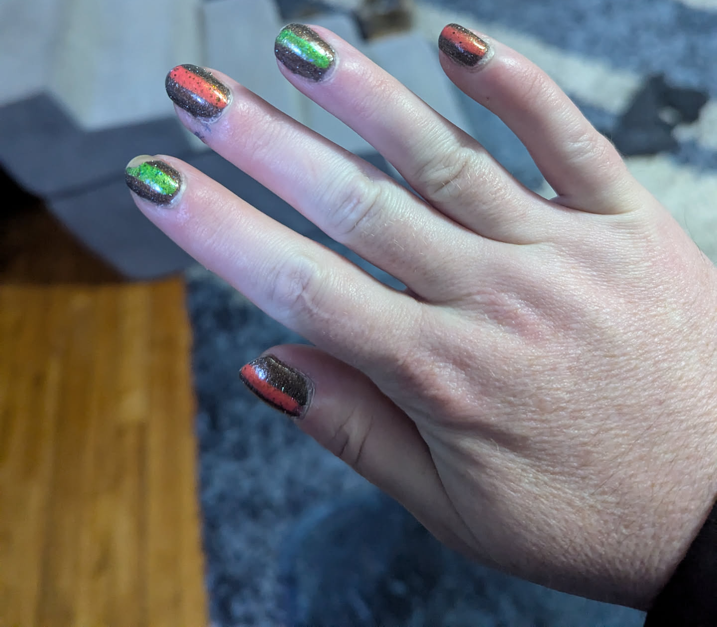 Despite all the hustle and bustle, I did manage to squeeze in a quick round of nail painting at some point 🤣 The glittery charcoal background color is a new one, and I'm looking forward to playing around with it some more.