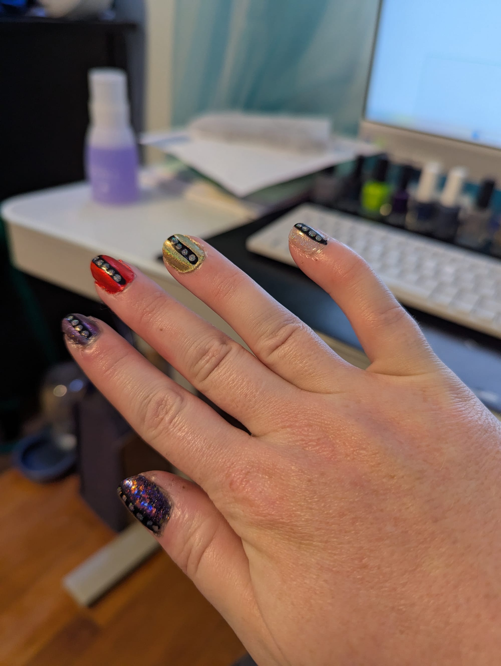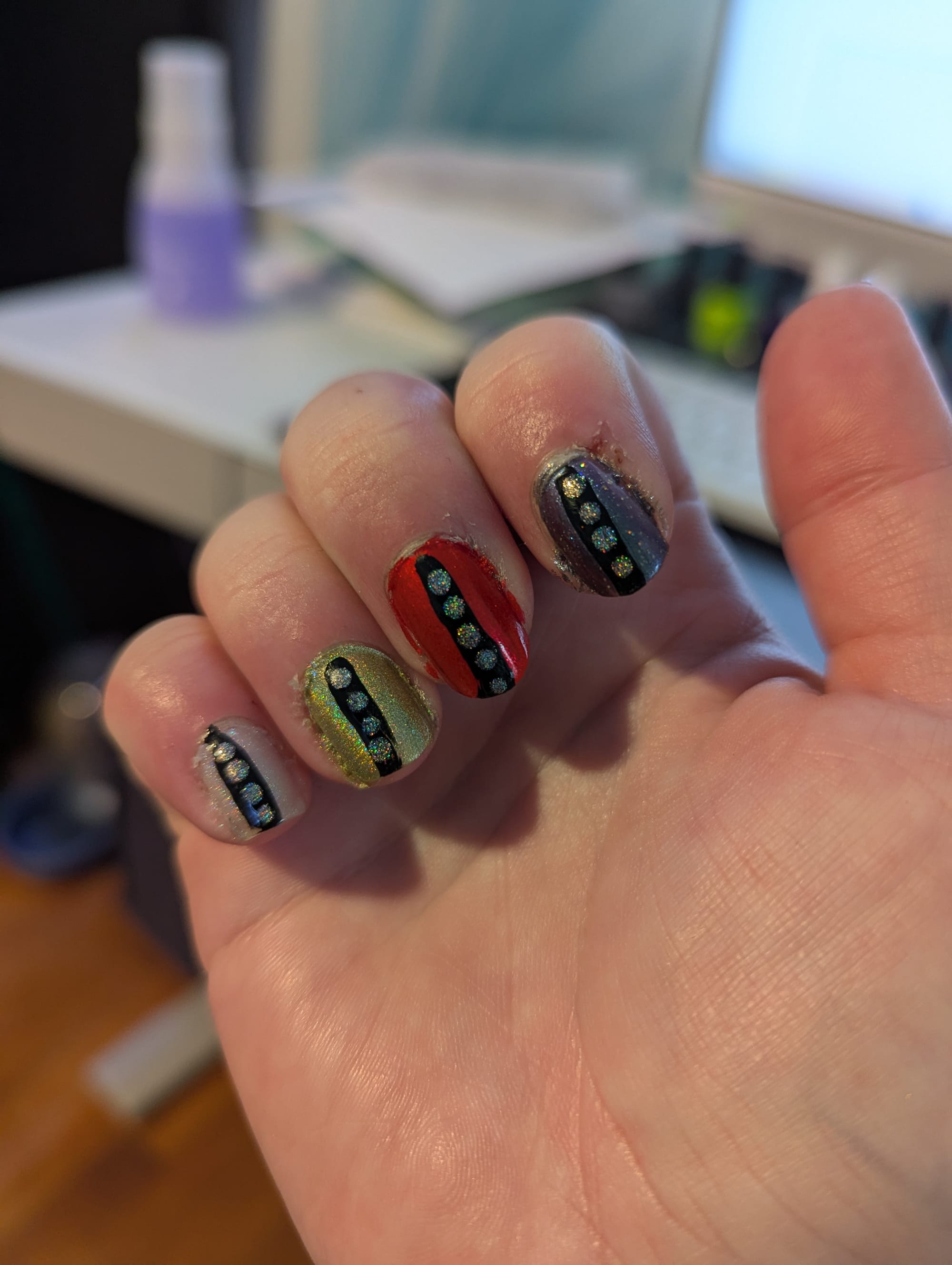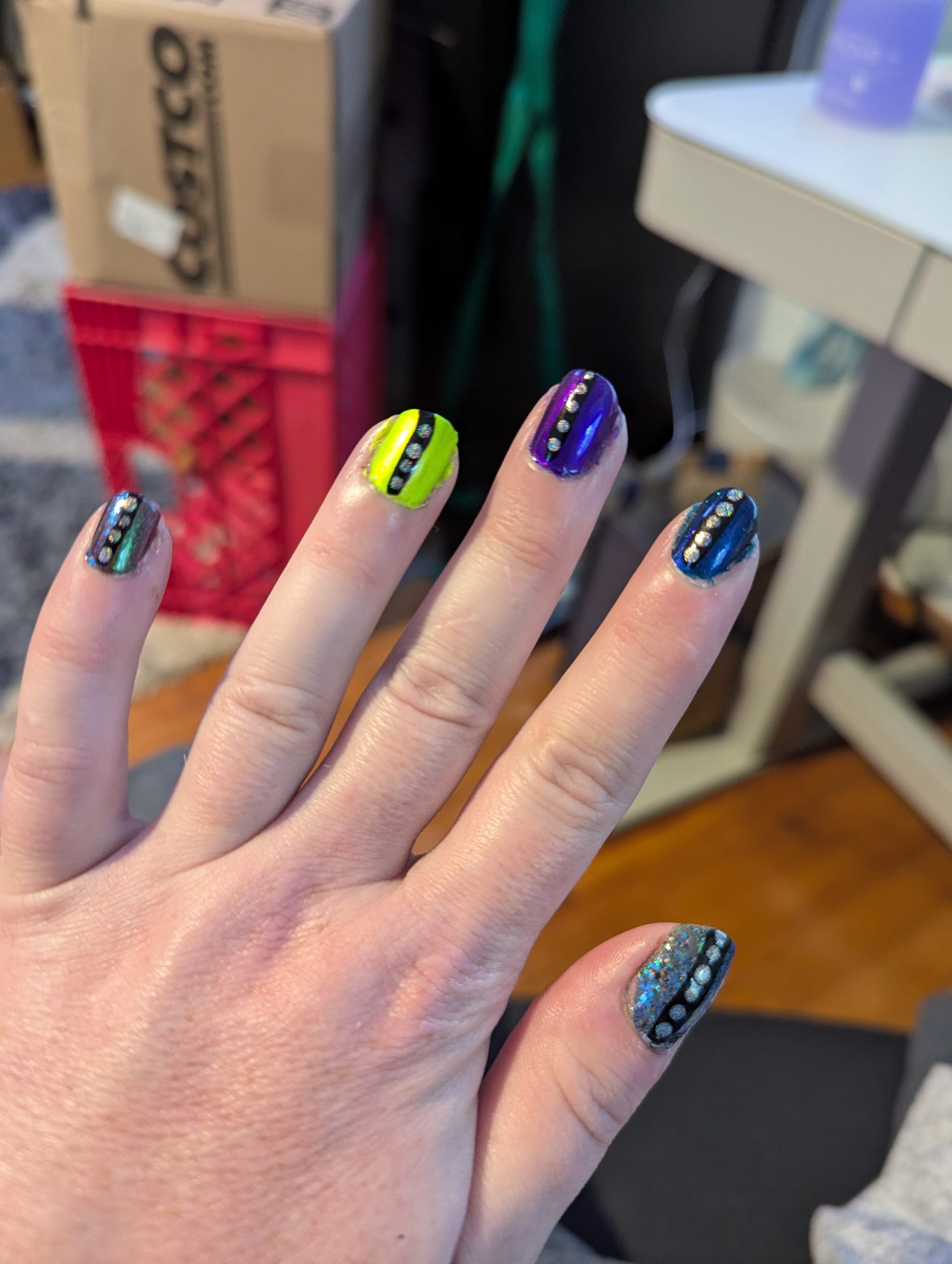 You made it to the end of the newsletter, so you get to see this week's nails! I'm still working on my swatching project, so it's another set of 10 different polishes. My cuticles have been getting destroyed by all the sugarbush work, but that's why I'm a community organizer and not a nail art influencer 😉